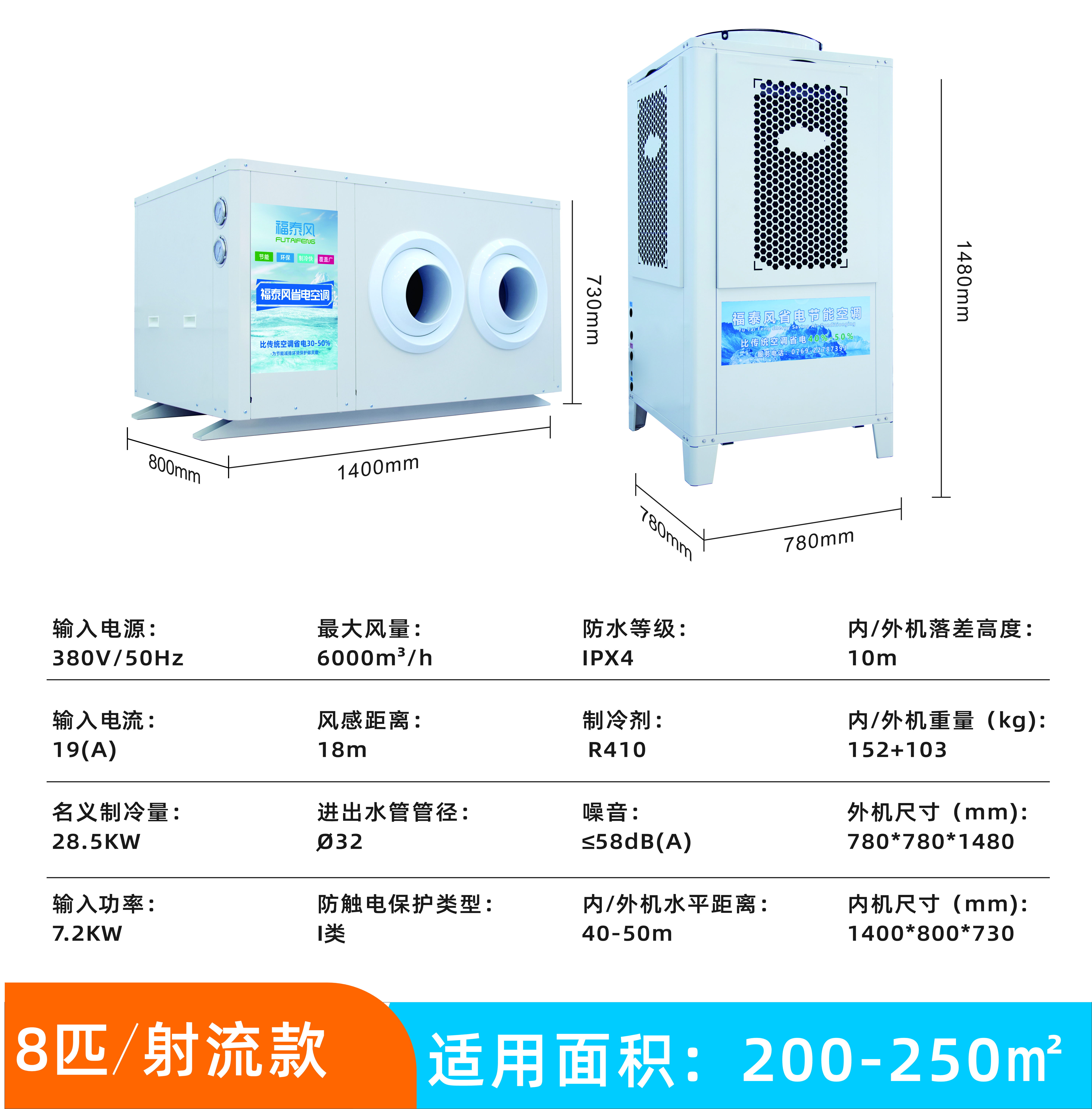 • 低运行成本:以5匹机型为例,每小时耗电约4.5度,可覆盖150~200平方米空间,而传统空调同等面积需多台设备且耗电更高。