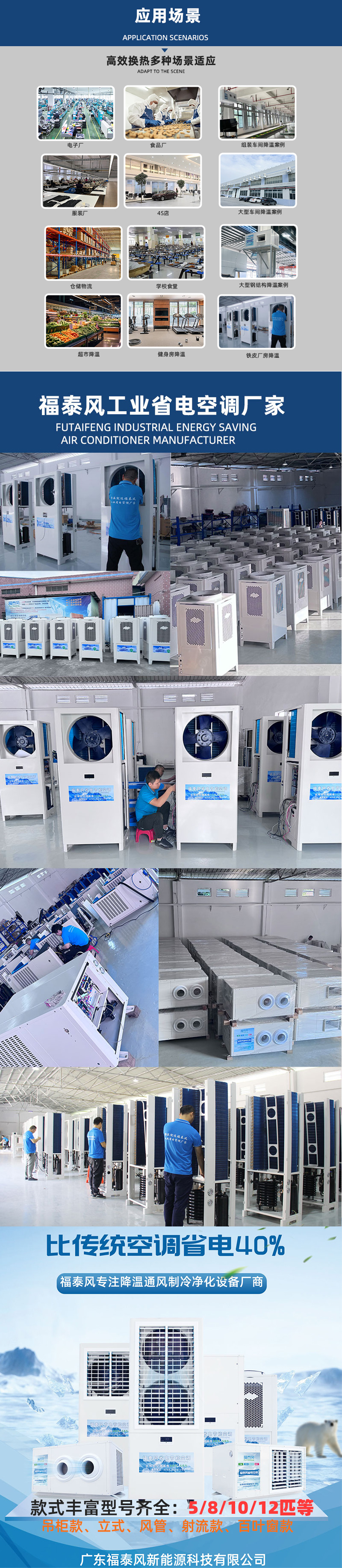 适应性强且应用广泛:工业省电空调在设计上注重耐用性,能够适应工业环境中的极端温度和湿度变化。其坚固的外壳和结构设计能够抵御工业车间内部可能存在的腐蚀、尘土等恶劣环境,确保设备的长寿命和稳定运行。无论是生产车间、仓库、实验室,还是展厅、体育场馆、饭堂餐厅等场所,工业省电空调都能提供稳定的制冷效果,满足不同工业领域的需求。